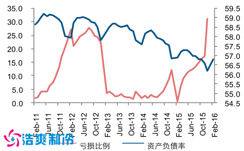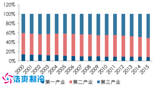 從發達國家的經驗來看 ,到了工業化的后期, 第二產業占國民經濟的比重將逐漸下降。 且第二產業所帶來的經濟效益也持續降低。 同時,第三產業將逐步取代第二產業在 GDP比例中的優勢地位。截止 2015 年末,我國第三產業占 GDP 比例 50%,高出第二產業9 個百分點。同時,我國制造業的收入增長率逐年下降,利潤增長率 2015 年處于負增長,2016 年由于國家各種改革和支持,雖然恢復到正增長,但依然維持在較低水平。此外, 我國第二產業的虧損企業比例 2015 年低到達了 31.3%, 而資產負債率震蕩下行。