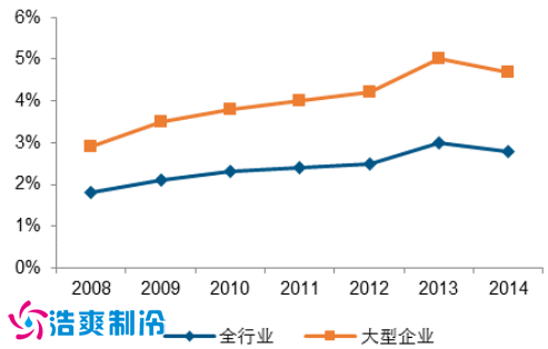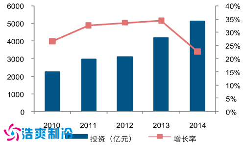 從物流費用的構成來看,2014 年盡管交通運輸費用占到物流總費用的 50%以上,但是與倉儲行業相關的保管費用和管理費用比例占到物流總費用的 47%, 將近一半; 從固定資產的投資來看,物流業在倉儲行業上的固定資產投資額逐年增加,2014 年達到 5159億元,雖然 2014 年投資增長率有所下降,但是也可以達 22.8%,處于較高水平。