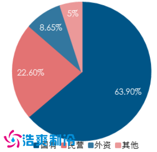 2010年倉儲行業普查中顯示,我國倉儲行業以國有行業為主導。整個行業中,國有及國有控股企業的資產總額 3627.5 億元,約占總額的 64%,具有絕對優勢;而民營和外資企業分別占比 22.6%和 8.65%。資產過億的大型倉儲企業 874 家,其中國有及國有控股企業占到六成以上比例,有 550家。此外,5%的億元以上企業資產占到全行業總資產的 71.4%,95%的企業資產只占到總資產的 28.6%。由此看出,國有大型倉儲企業占據大部分資源。但是近年來,隨著物流地產的規模增加和倉儲管理的興起, 我國倉儲外資企業和民營企業逐漸獲的競爭優勢。