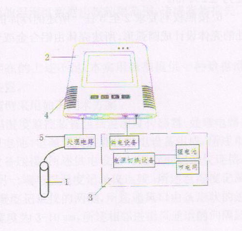 【0019】 本實用新型的冷庫的溫濕度監控裝置的好處:由于本實用新型的溫濕度監控裝置包括溫濕度傳感器1、處理電路5、溫濕度記錄儀2和電源3,由于電源3由市電網、鋰電池、電源切換裝置和供電設備組成,市電網和鋰電池均通過電源切換裝置與供電設備連接,供電設備與溫濕度記錄儀2連接,溫濕度記錄儀2平時由市電網供電,當市電網斷電時,電源切換裝置立即將電源切換到由鋰電池供電,這樣保證了溫濕度記錄儀2的電源從不間斷,從而實現了溫濕度監控裝置全天候不間斷監測;處理電路5的一端與溫濕度傳感器1連接,另一端溫濕度記錄儀2連接,溫濕度傳感器1采集到的溫濕度數據的電信號先經過處理電路5進行處理,處理電路5將過壓、過流、微弱的電信號進行放大、隔離、過濾等處理,處理后的電信號再傳輸到溫濕度記錄儀2,保證了溫濕度記錄儀2能讀取所有的電信號,使溫濕度記錄儀2顯示的數據能準確地反映冷庫的實際溫濕度,從而實現了溫濕度監控裝置的數據準確,另外,溫濕度記錄儀2設有通風口4,通風口4對稱地布置在溫濕度記錄儀2的兩側,通風口2由條形狀的進出風通道8有規律地排列,進出風通道8的寬度為3-10mm,相鄰進出風通道8的間隔距離為2mm,通風口4設置在溫濕度記錄儀2中發熱量大的電子元件處,由于通風口4對稱地布置在溫濕度記錄儀2的兩側,在保證溫濕度記錄儀2散熱的同時,又能讓發熱量大的電子元件處產生空氣對流,杜絕了溫濕度記錄儀2的內部產生高溫現象,所以本實用新型的冷庫的溫濕度監控裝置的數據準確,實現了全天候不間斷監測。
